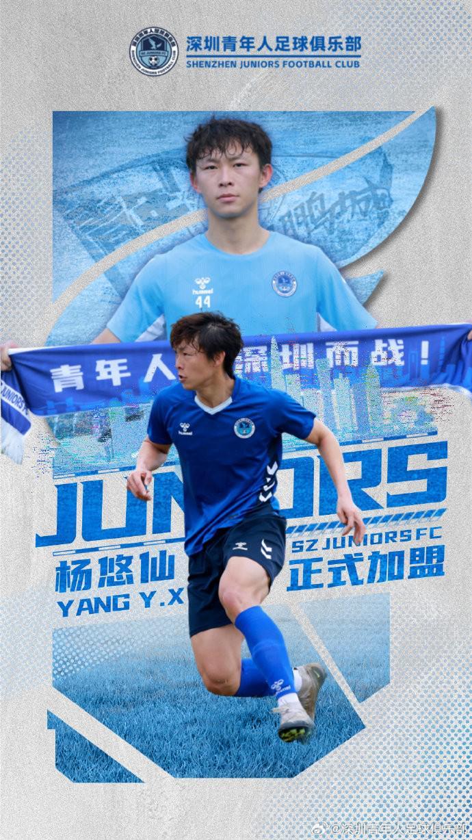 经与球员本人友好协商并达成一致,球员杨悠仙正式加盟深圳青年人足球俱乐部。